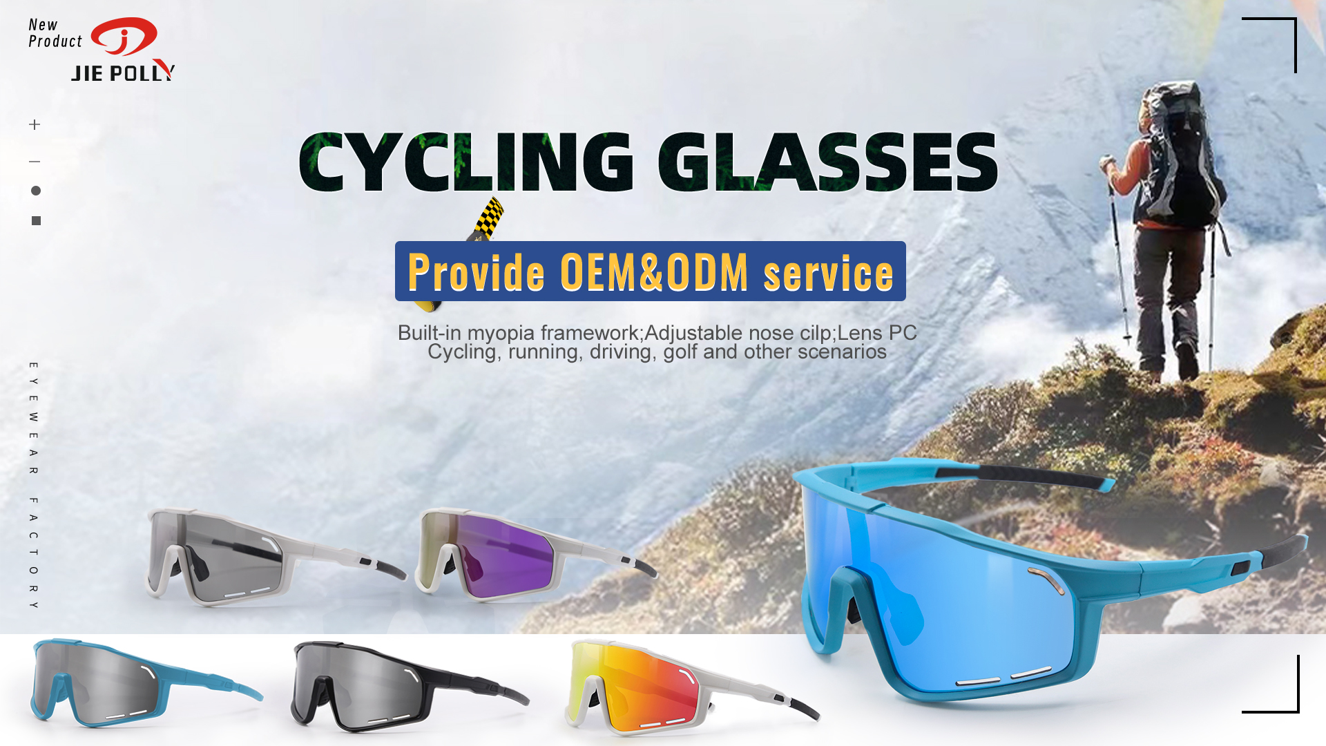 Jiepolly, founded in 2014, we own 3,000 squre meters workshop and complete supporting facilities. It is an integrated factory which involving design, developing and sales. Jiepolly has wide range of products with a collection of Sports eyewear for Europeans, Americans and Asians, as for size of goggles, our goggles can fit adults and children, as for function, we have multifunctional, simple and generous models to satisfy customers' various needs. In addition, we also produce Motorcycle glasses and Cycling glasses that reflected our adventurous soul and passion for sports.