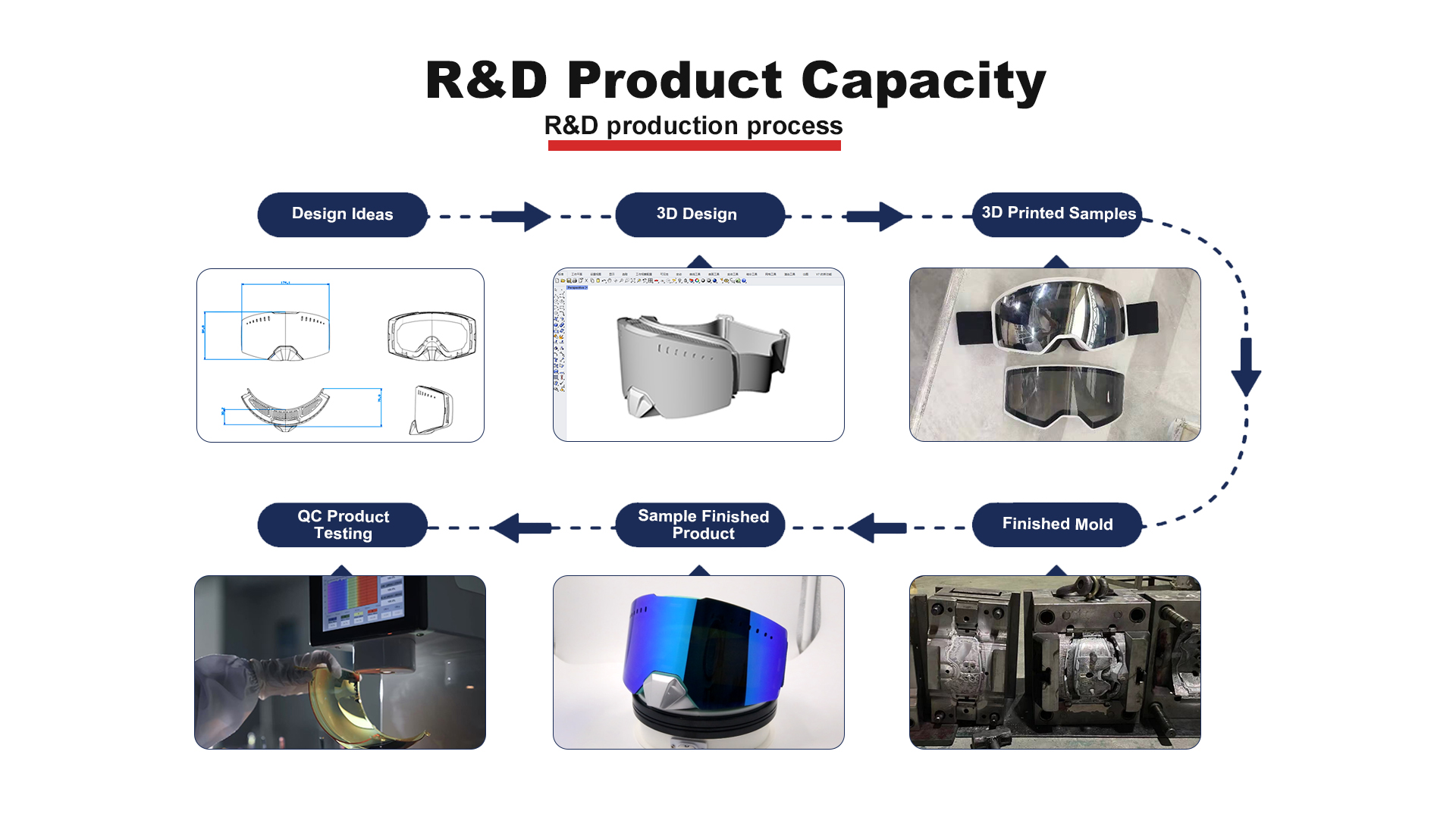 high-performance cycling glasses, motorcycle goggles, or ski goggles into a market-ready reality.